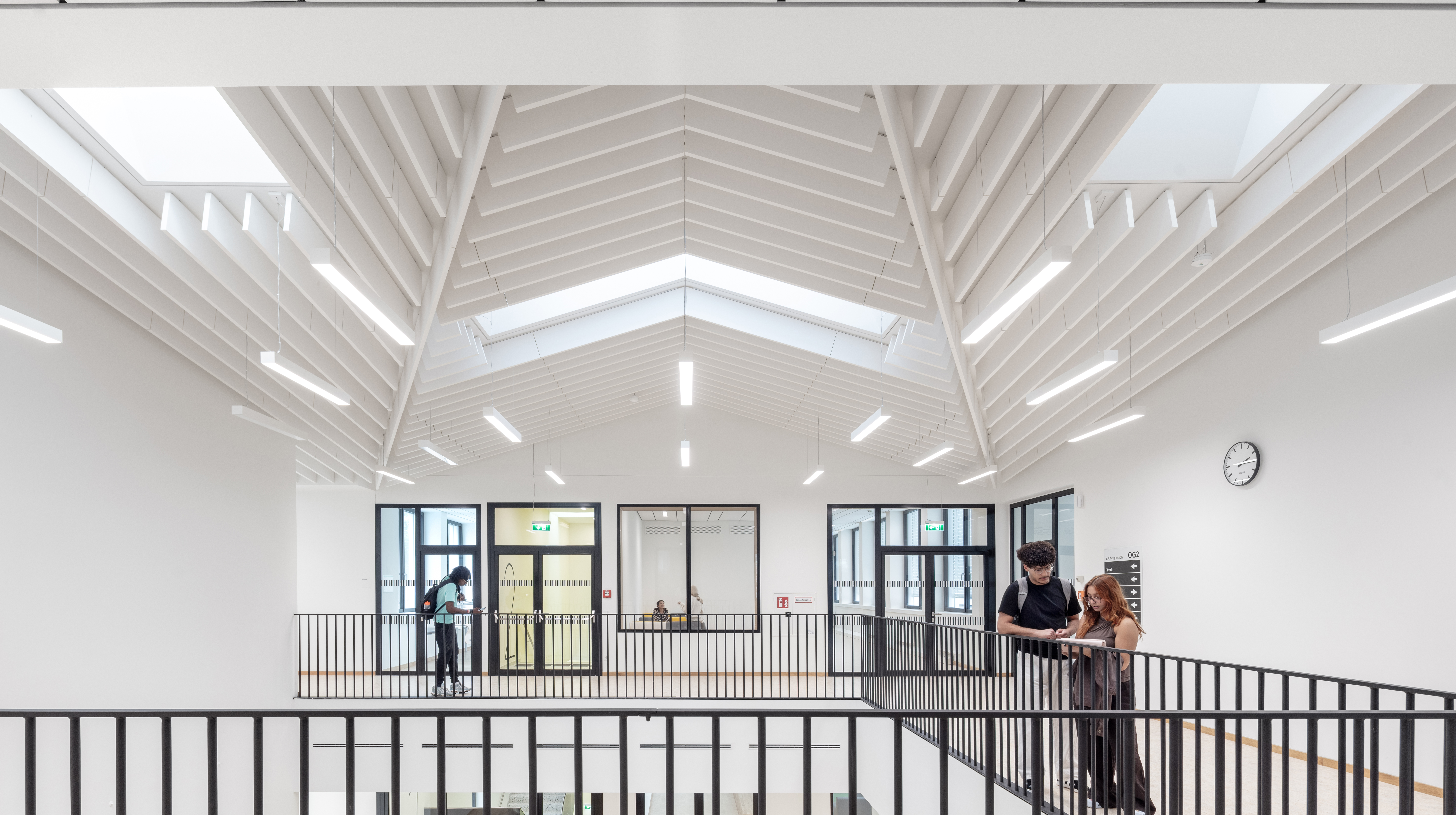 Zusätzlich wurde das Gebäude mit einer thermischen und technischen Sanierung zukunftsfit für einen energieeffizienten Gebäudebetrieb gemacht und die Gasversorgung zugunsten von Fernwärme komplett rückgebaut. Eine neue PV-Anlage mit 119 kWp am Dach versorgt die Schule zusätzlich mit erneuerbarer, autarker Energie.