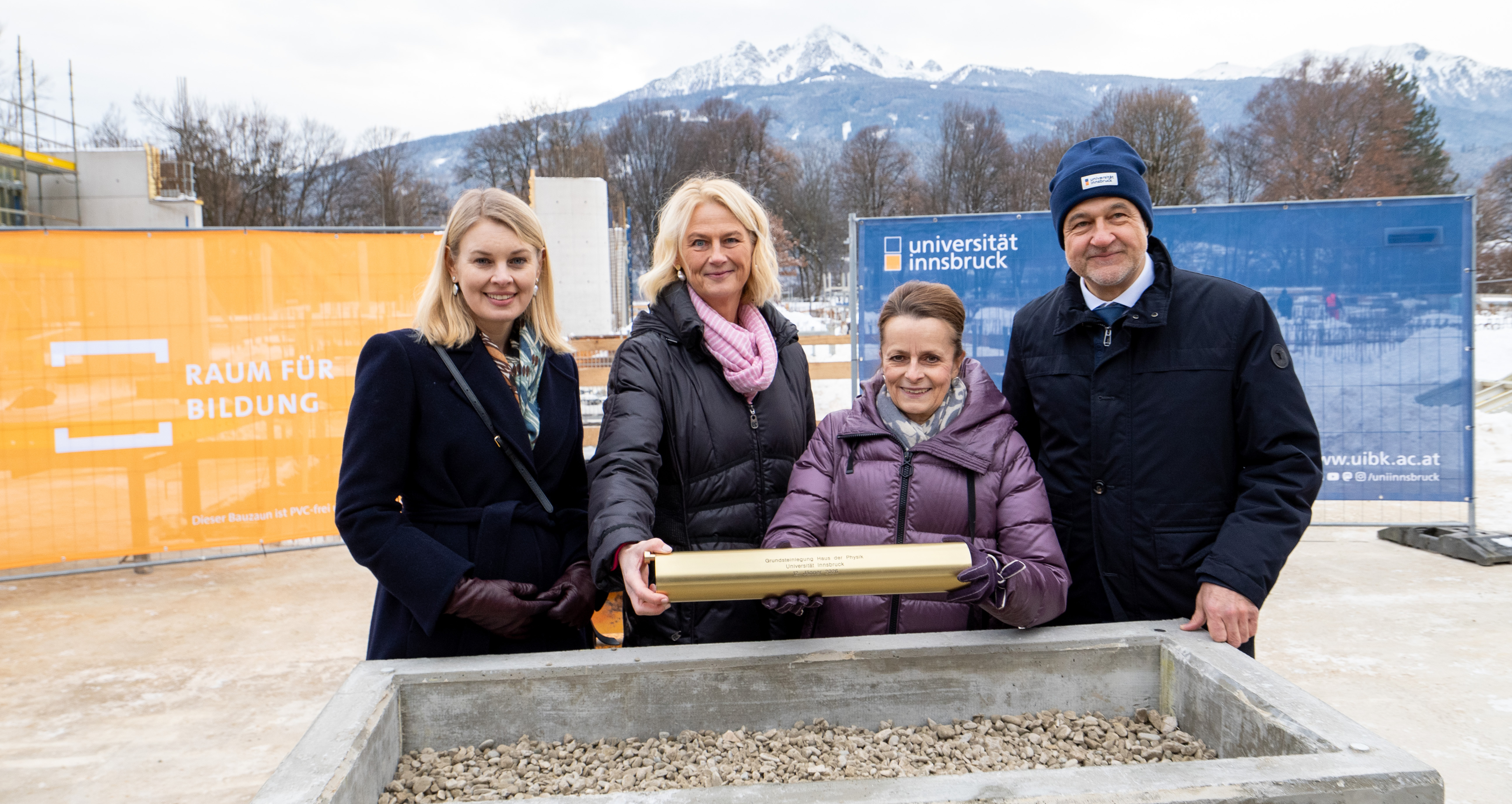 Das Haus der Physik entsteht am Campus Technikerstraße der Universität Innsbruck und bietet nach der Fertigstellung im Jahr 2028 genügend Platz für die Wissenschaft und Forschung. Das neue und moderne Universitätsgebäude wird seit Ende 2024 errichtet. Gemeinsam mit der BIG Geschäftsführerin Christine Dornaus, der Rektorin der Universität Innsbruck Veronika Sexl, dem Vizerektor für Forschung Gregor Weihs sowie der Vizebürgermeisterin der Stadt Innsbruck Elisabeth Mayr fand heute die symbolische Grundsteinlegung statt. Konzipiert ist das Haus für rund 850 Studierende und 500 Mitarbeiterinnen und Mitarbeiter der Universität Innsbruck. Im Wintersemester 2028 startet der Betrieb im neuen Universitätsgebäude. Die Bundesimmobiliengesellschaft investiert rund 230 Millionen Euro in den Neubau. Der Betrag wird über Mietzahlungen refinanziert, die das Bundesministerium für Frauen, Wissenschaft und Forschung zur Verfügung stellt. Geplant wurde das Haus der Physik vom Architekturbüro Mohr-Niklas Architekten.