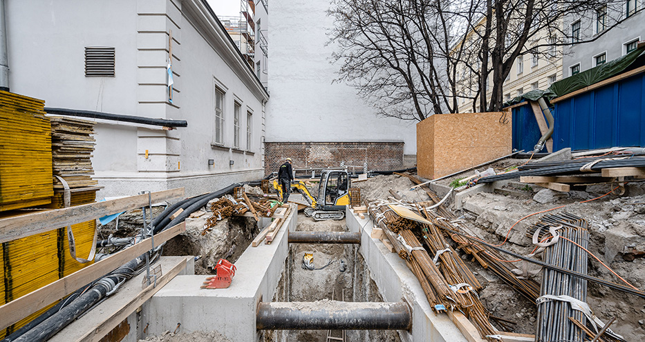 "Herausforderungen sind die Baugrube und die Logistik. Das heißt durch die beengte innerstädtische Lage gibt es keinen Platz für das Baumaterial. Wenn man z.B. einen Bagger nicht benötigt, muss eben dieser von der Baustelle entfernt werden, da jeder Quadratmeter für die aktiven Bauarbeiten verplant ist. Die Challenge ist sich nicht gegenseitig im Weg zu stehen", so Herwig Wolloner Projektmanager.