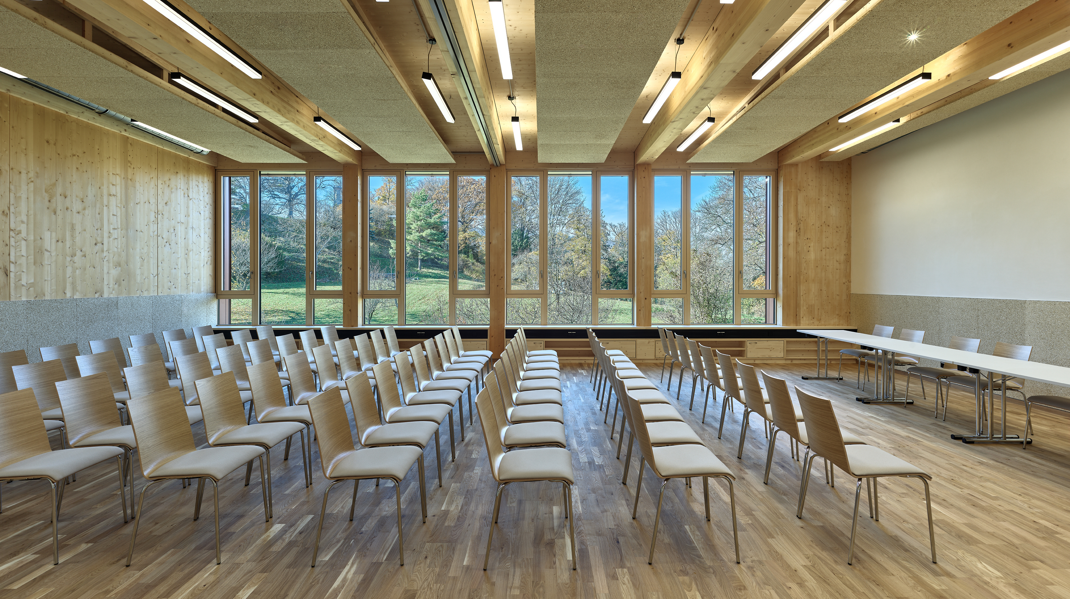 Das im klimaaktiv Gold Standard errichtete Gebäude erlaubt einen vollständigen Rückbau. Alle Verbindungen erfolgten mittels Schraubung und auch alle Fußbodenaufbauten sind zerlegbar und sortenrein trennbar.