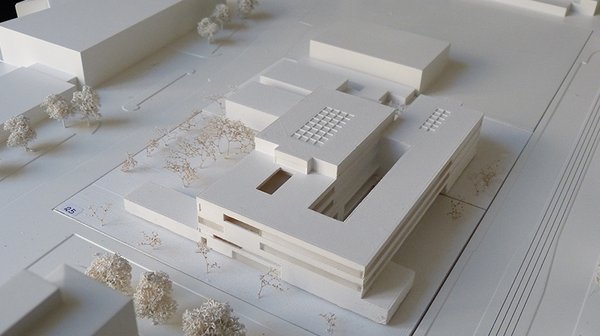 Die Ausformulierung der Deckenuntersicht des zweigeschossigen Brückenbereichs ist zu gestalten, ebenso die Frage des Tragwerkes und der Raumbildung weiterzudenken
